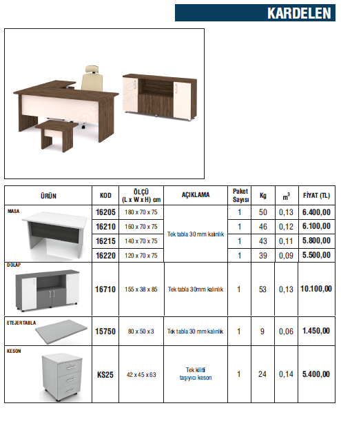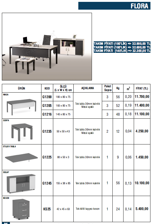MASA -- 263x100x75 h SEHPA -- 103x72x42 h ETEJER - 133x63x75 h DOLAP - 238x53x99 h
